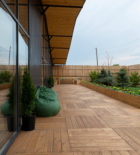 Территория комплекса закрытая и ухоженная, с атмосферой уединения и безопасности. Вы можете наслаждаться свежим воздухом, тишиной и природой, не отказываясь от привычных удобств.